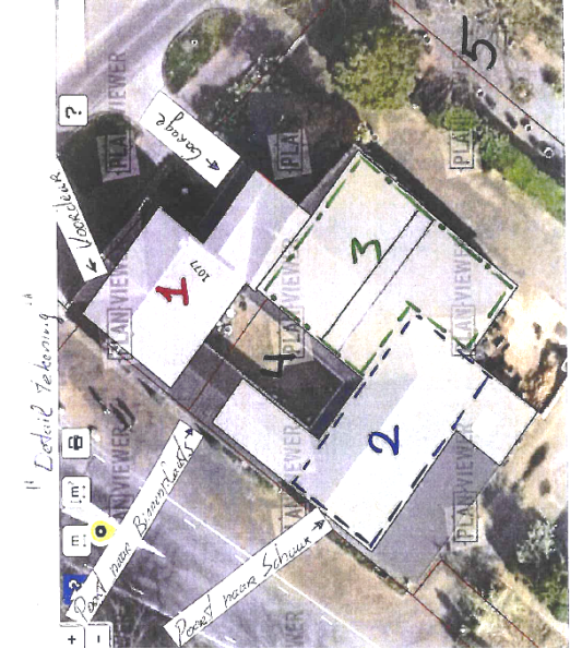 [eisers in conventie, verweerders in reconventie] . hebben zich voor advies over de omvang van het legaat gewend tot het kantoor van de notaris. Vooruitlopend op en ten behoeve van een gesprek met een medewerker van de notaris heeft een van de erven een zogenoemde detailtekening gemaakt van de woonboerderij van [erflater] 3, hierna te noemen: ‘de detailtekening’. Deze ziet er als volgt uit: