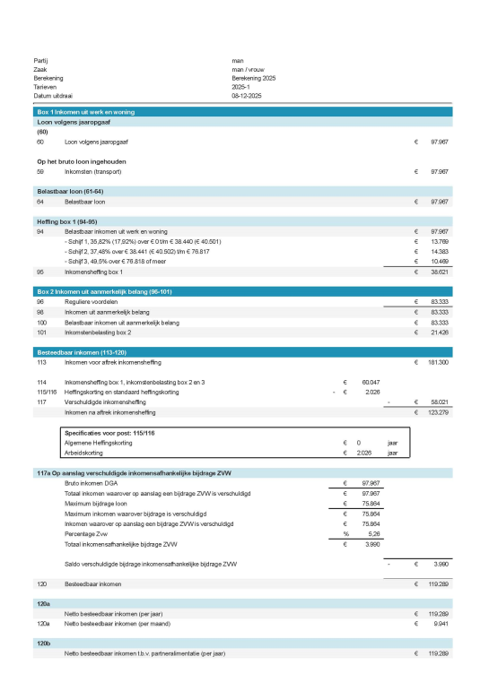 Draagkracht partneralimentatie (60%)    € 111