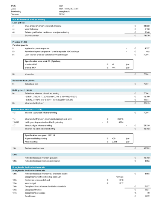 Netto besteedbaar inkomen van de vertrokken ouder/partner is € 3.500 per maand.